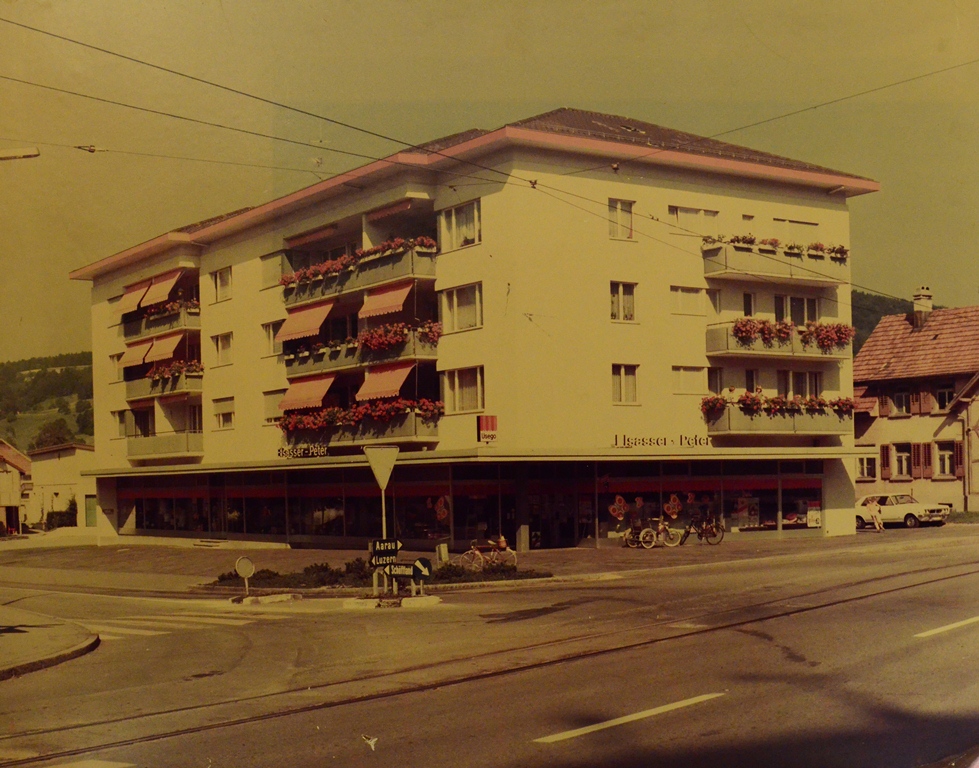 Anno 1929 übernahm Hans Jörgs Grossvater, Ernst Elsasser-Peter, das Ladengeschäft. Nach fünf Jahren wurde das alte Bauernhaus durch ein richtiges kleines Geschäftshaus ersetzt. Mit Leben erfüllte Rosa Elsasser-Peter die Ladenfläche, die Frau von Ernst. Eines jeden Kunden Bedürfnisse kannte sie, und dementsprechend schnell wuchs das Angebot. Im Jahr 1968 wurde das alte Gebäude abgebrochen und ein zweckentsprechender Neubau errichtet. Gleichzeitig ist der Laden ein Mal von Grund auf neu eingerichtet worden. Hans Jörgs Eltern, Silvia und Hans und sein Onkel, Ernst, führten seither den Laden unter dem Motto „alles unter einem Dach“. Mit dem Neubau wurde auch das Sortiment stark erweitert… Unterkulm bekam ein „kleines“ Warenhaus, wie es dazumal Mode war.